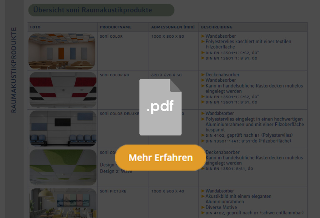 Übersicht Raumakustikprodukte