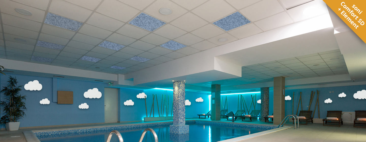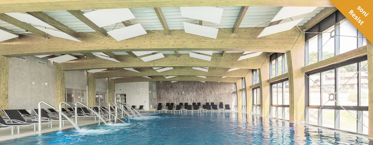 Vylepšete svůj krytý bazén / sportovní zařízení pomocí našich zvukových absorbérů a využijte: