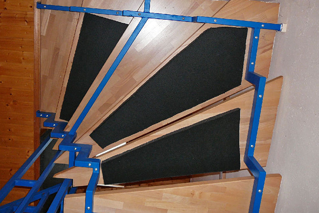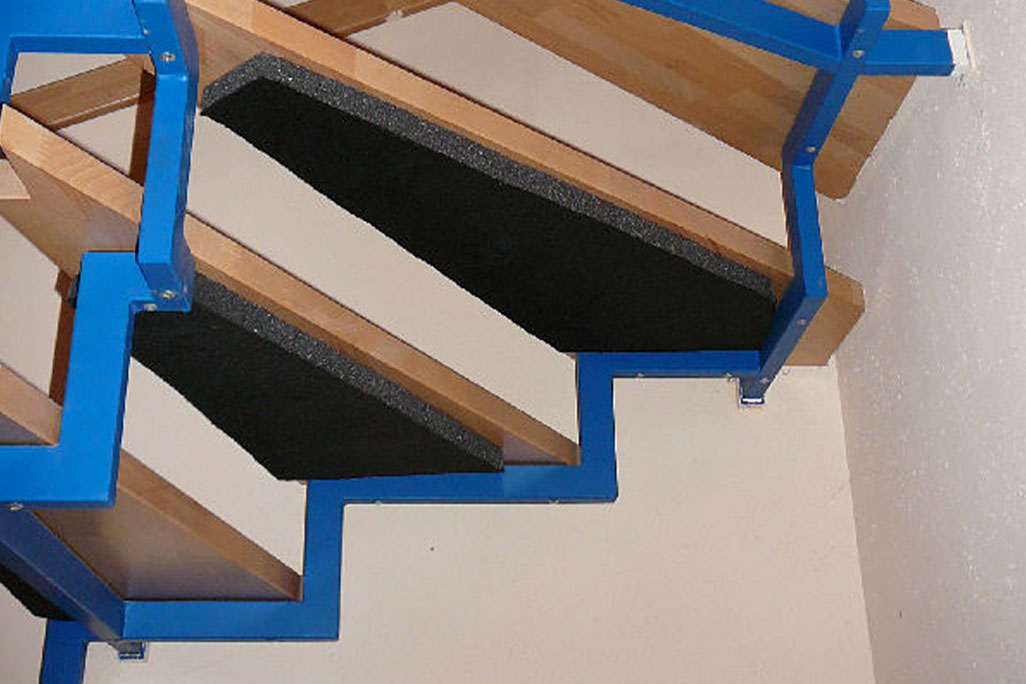 Jeden z velmi zkušených poradců společnosti soniflex navrhl pokrýt spodní stranu dřevěných stupňů našeho schodiště 30 mm silnými deskami soni DECOR s redukcí hluku se samolepicí zadní stranou. Protože stupně mají různé tvary a rozměry, museli jsme protihlukové panely před instalací nařezat na míru. Pomocí ostrého nože (popř. ulamovacím nožem) to šlo rychle a snadno. Odstranění ochranné fólie ze samolepicí zadní strany bylo také hračkou. Poté jsme na spodní stranu schůdků aplikovali nařezané kusy protihlukových panelů soni DECOR. I když některé z nich nebyly na první pokus přesně ve správné poloze, nepředstavovalo to žádný problém: Stačilo je velmi opatrně odlepit - aniž by došlo k poškození samotných panelů nebo samolepicí vrstvy na zadní straně - a znovu je nainstalovat na správné místo. Lepidlo fungovalo bez problémů. (Komentář společnosti soniflex: v závislosti na podkladu nemusí být odstranění a opětovné nalepení samolepicích akustických panelů vždy tak snadné.")