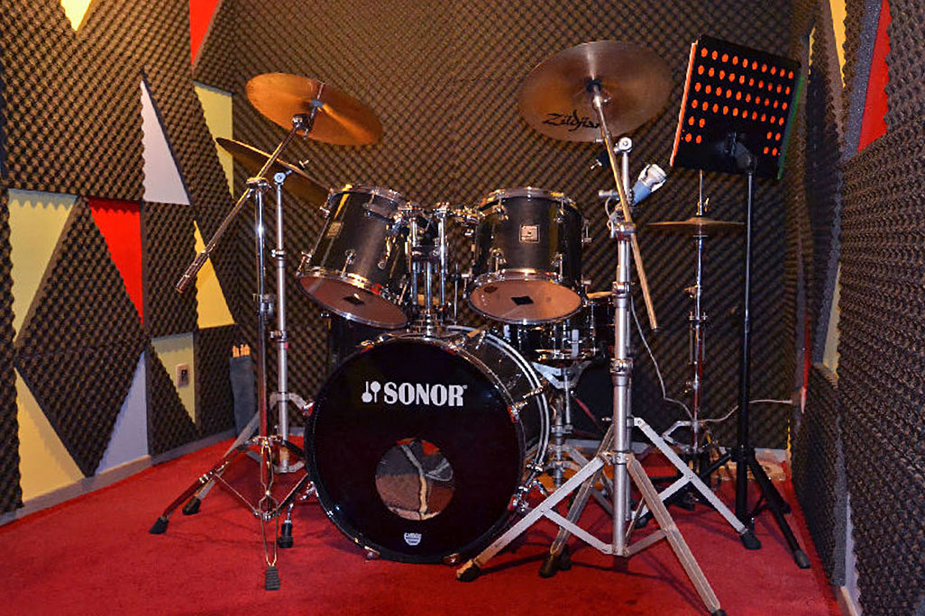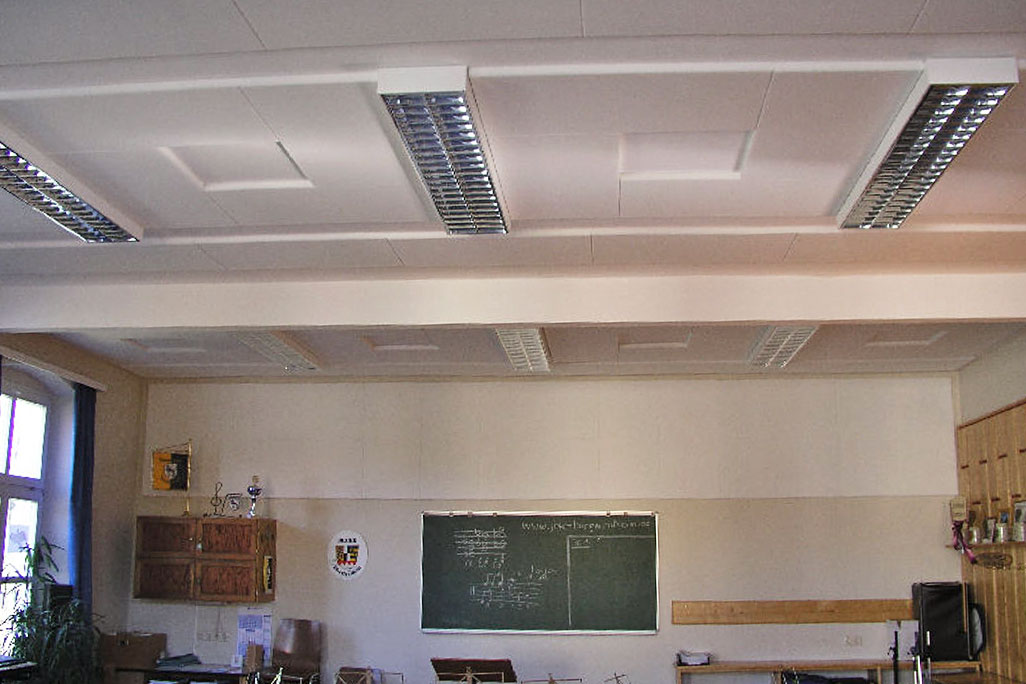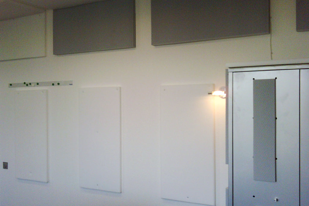 Akustika v naší zkušebně byla skutečným problémem. Když zkoušíme s celou kapelou, máme v místnosti asi 30 dechových nástrojů a 4 bicí soupravy. Hlasitost zvuku byla někdy nesnesitelně vysoká, protože zvuk se plně odrážel od tvrdého povrchu stropu. Dozvuk byl extrémní.