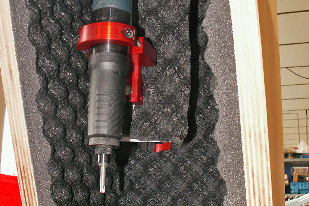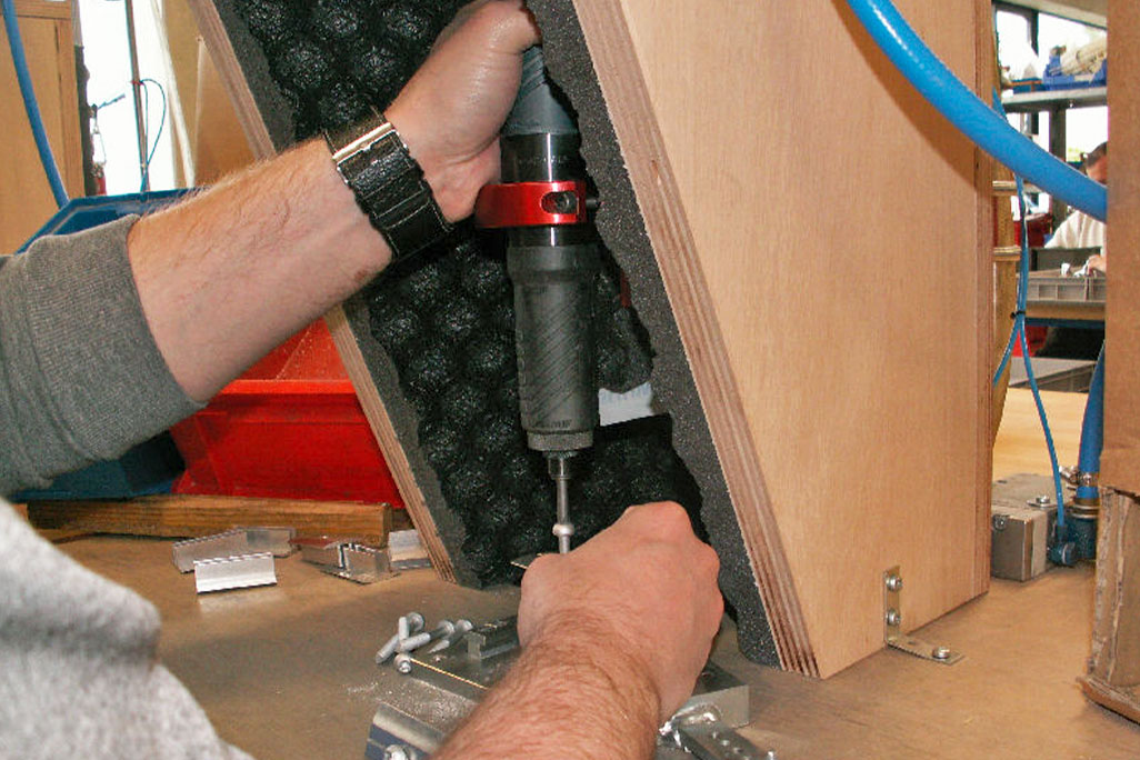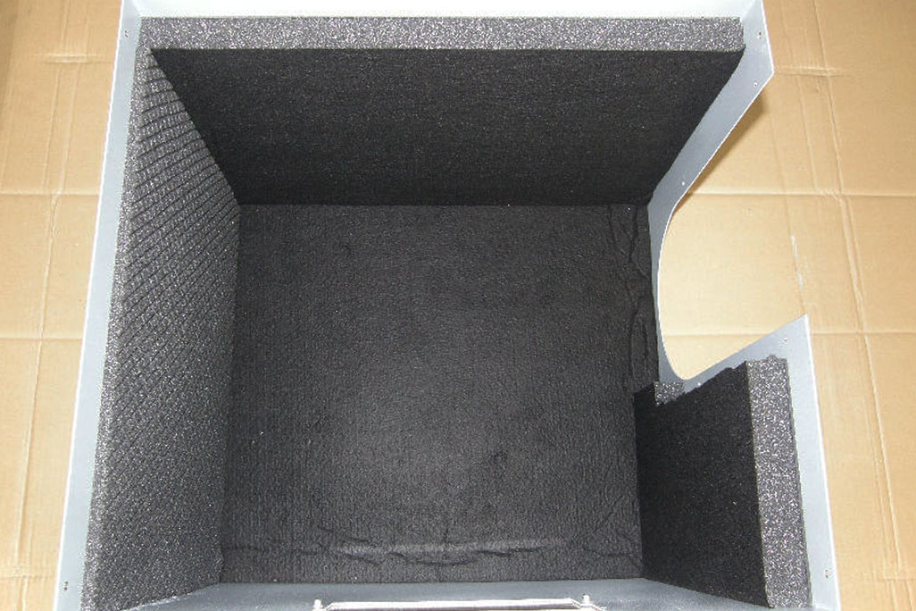Náš vzduchový kompresor vydával takový hluk, že naši zaměstnanci nemohli pracovat v jeho těsné blízkosti. Proto jsme pro kompresor postavili kryt z masivního dřeva. Vnitřní plochy skříně jsme pak obložili akusticky vysoce účinnou pěnou pro tlumení hluku soni WAVE 50 mm se samolepicí zadní plochou. Panely z akustické pěny soni WAVE bylo snadné nařezat na požadovanou velikost pomocí běžného nože na koberce. Při instalaci jsme odstranili ochrannou fólii ze samolepicí vrstvy na zadním líci a poté připevnili namontované kusy na příslušné plochy.