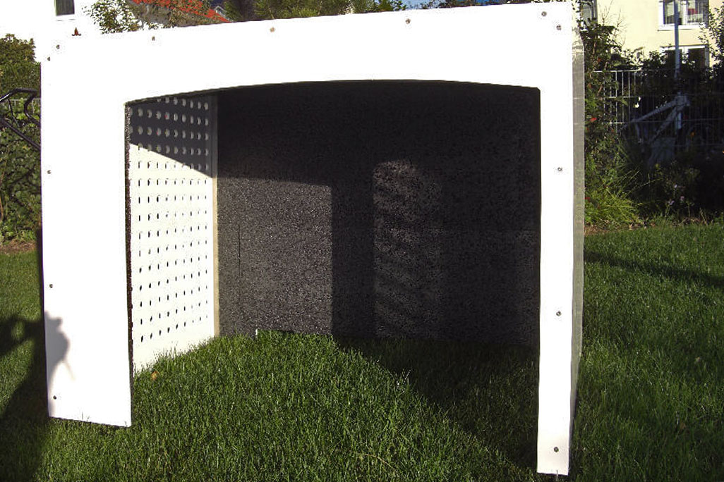 Na základě podrobných rad týmu soniflex jsme nechali naše bazénové tepelné čerpadlo vybavit zvukově izolačním krytem pro snížení hladiny hluku. Zvukově tlumicí účinek je vynikající. Zvukově izolační kryt byl vyroben přesně na míru rozměrům tepelného čerpadla společností BayerDesign v Gaimersheimu. Je vyrobena z panelů z pěnového PVC; vnitřní plochy jsou pokryty 25 mm silnými zvukově izolačními panely soni RESIST.